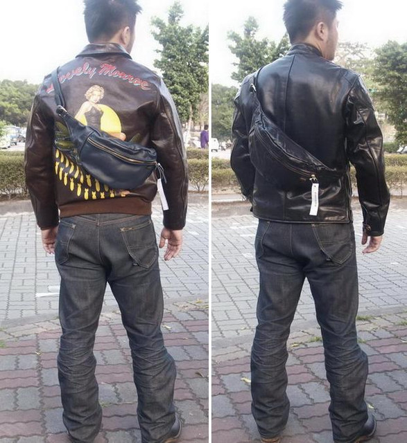 Model 171CM / 75KG , 172CM /70KG 哈雷徽章為個人加工,有興趣者亦可自行準備喜愛的徽章,請修改 師縫上,即可創造個人風格的款式, 末兩張圖為內容置物參考