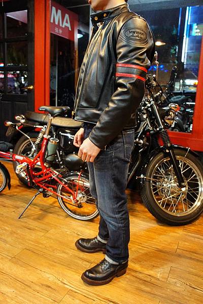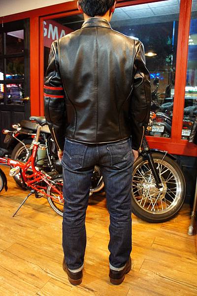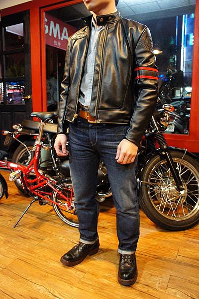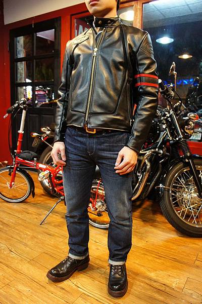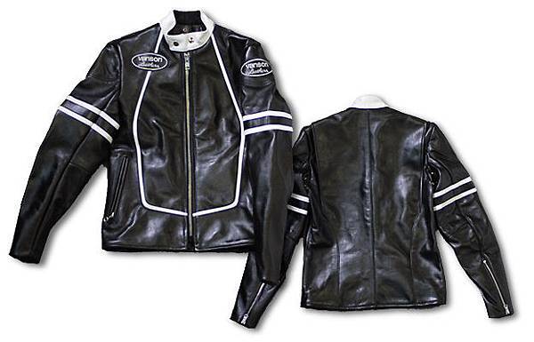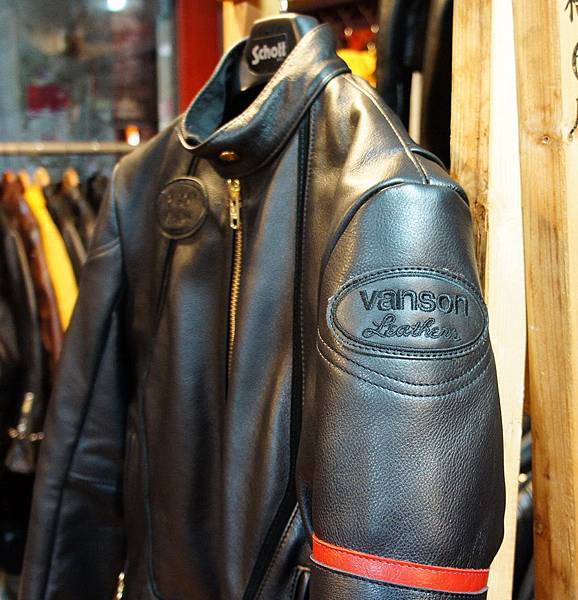 右胸與左肩的Vanson Logo皮徽章也選擇黑色皮革和車線